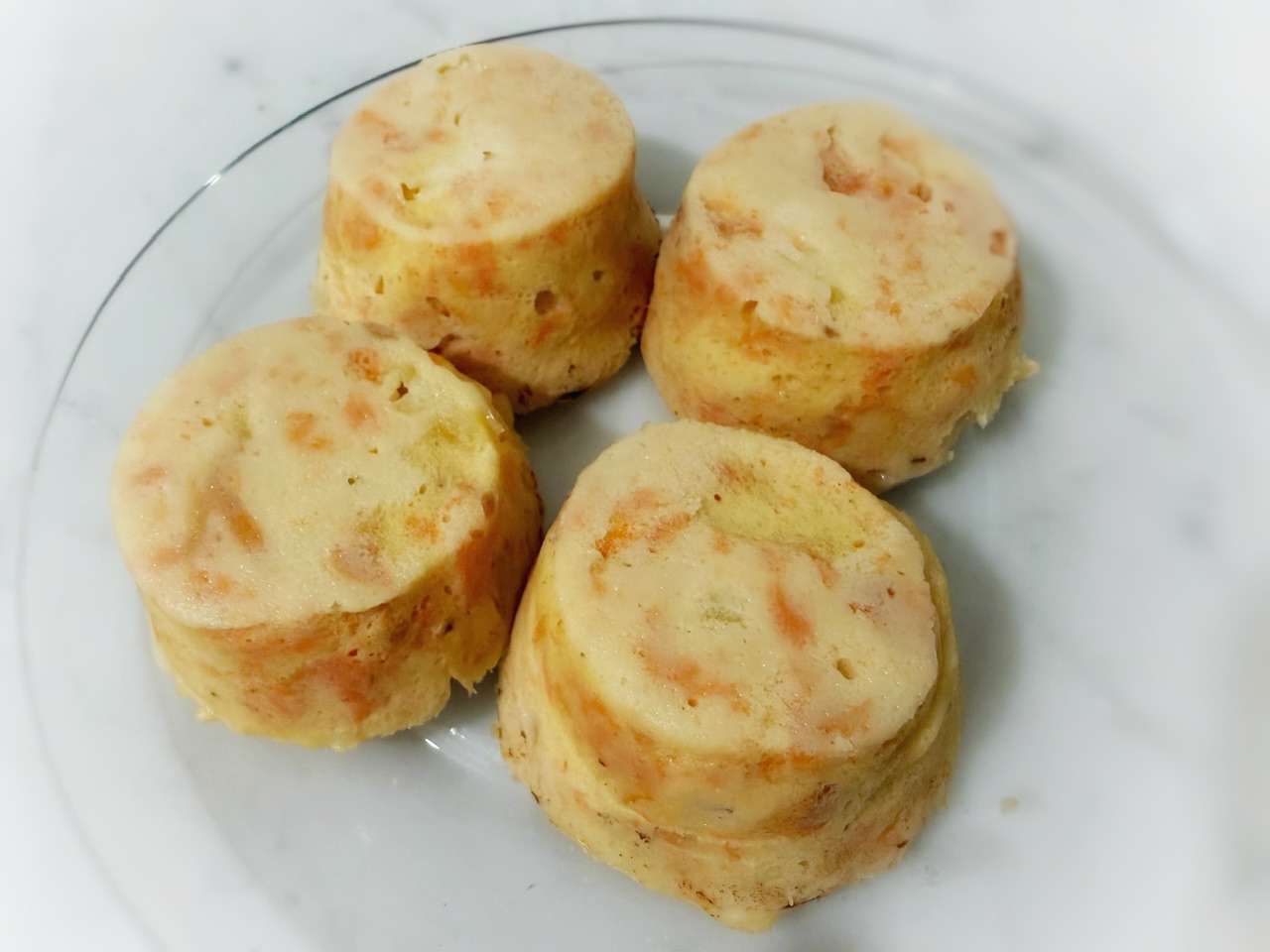 2 カップケーキ型に注ぎ、500wの電子レンジで4分ほど加熱する。