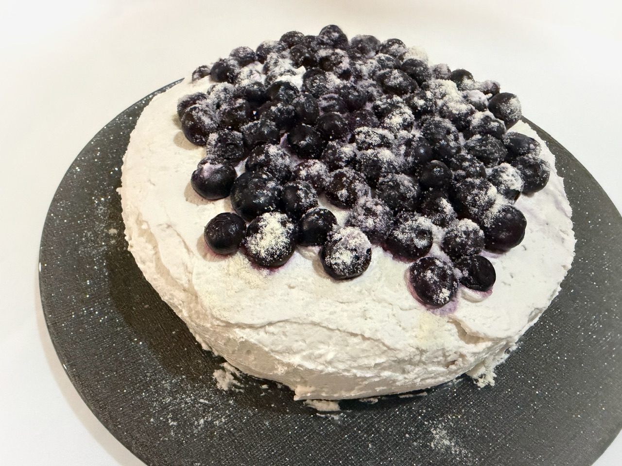 3 1は横1/2スライスして2を塗り、ブルーベリーをデコレーションして、ココナッツフラワーをかける。