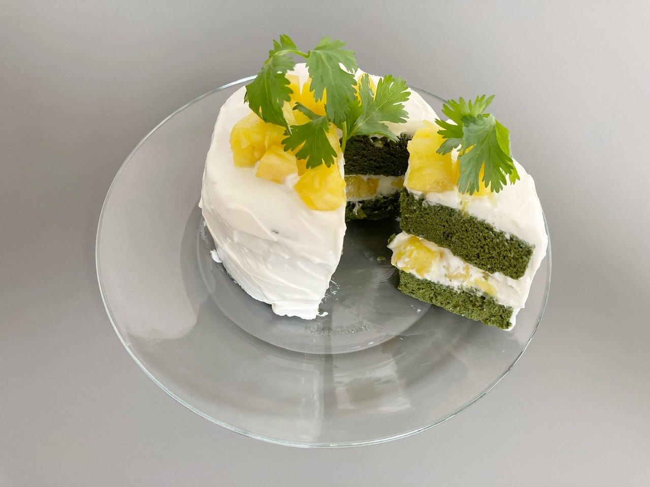 3 1は横1/2スライスして2を塗り、2をデコレーションする。